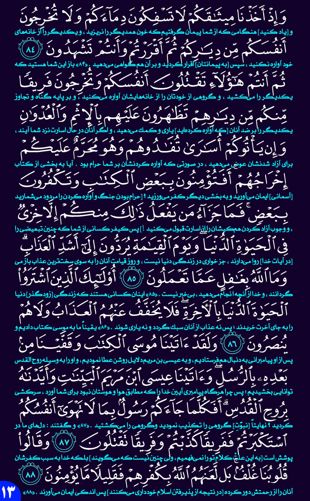 قرائت میکنیم صفحه 13 قرآن کریم را به نیت برآورده شدن حاجات شخصى و شفاى همه ى بیماران و سلامتی