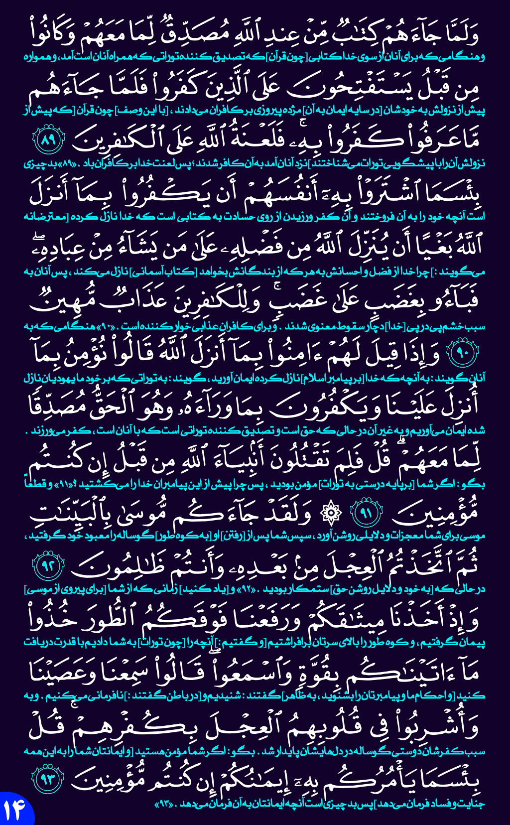 قرائت میکنیم صفحه 14 قرآن کریم را به نیت برآورده شدن حاجات شخصى و شفاى همه ى بیماران