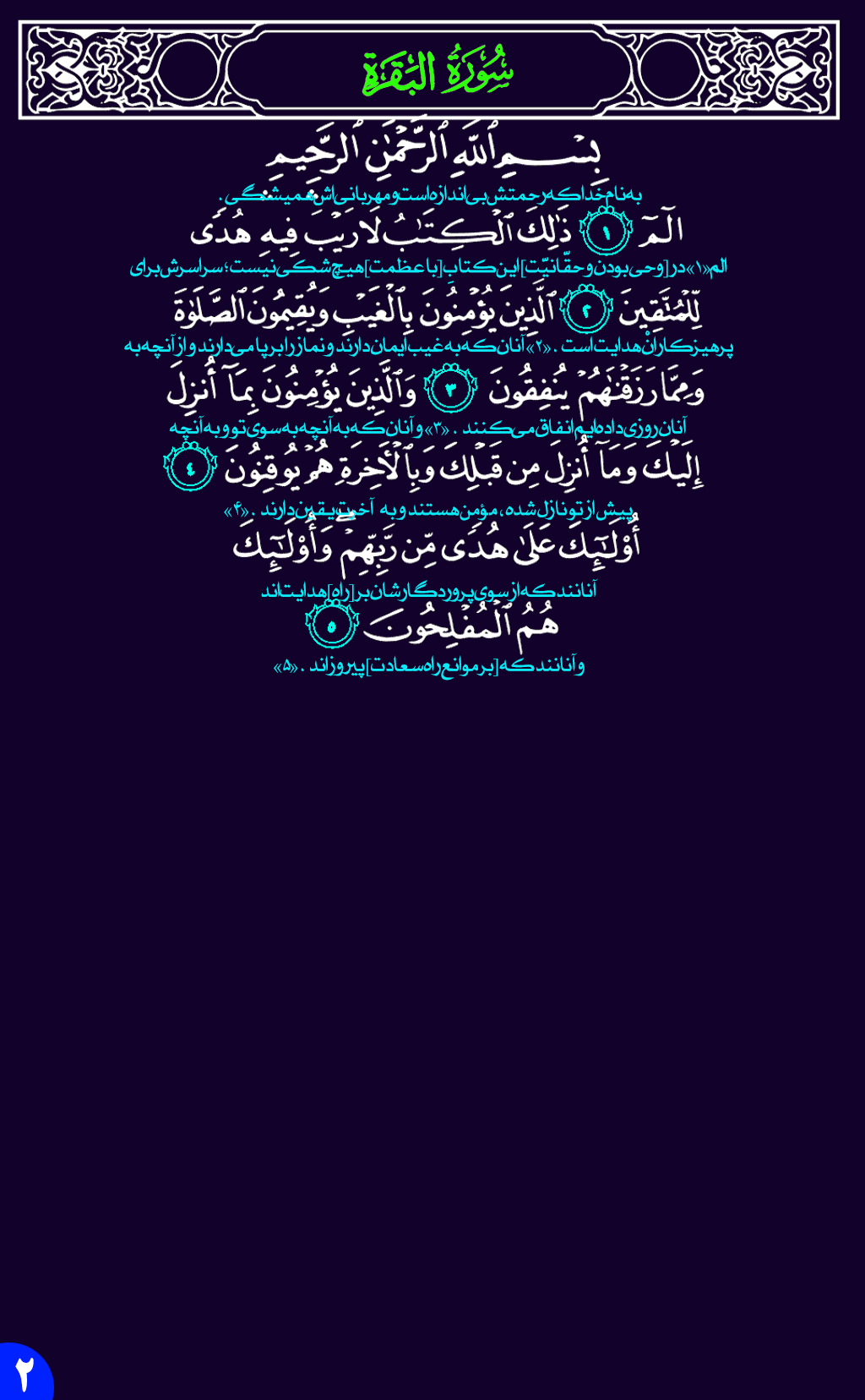 قرائت میکنیم صفحه 2 قرآن کریم را به نیت برآورده شدن حاجات شخصى و شفاى همه ى بیماران