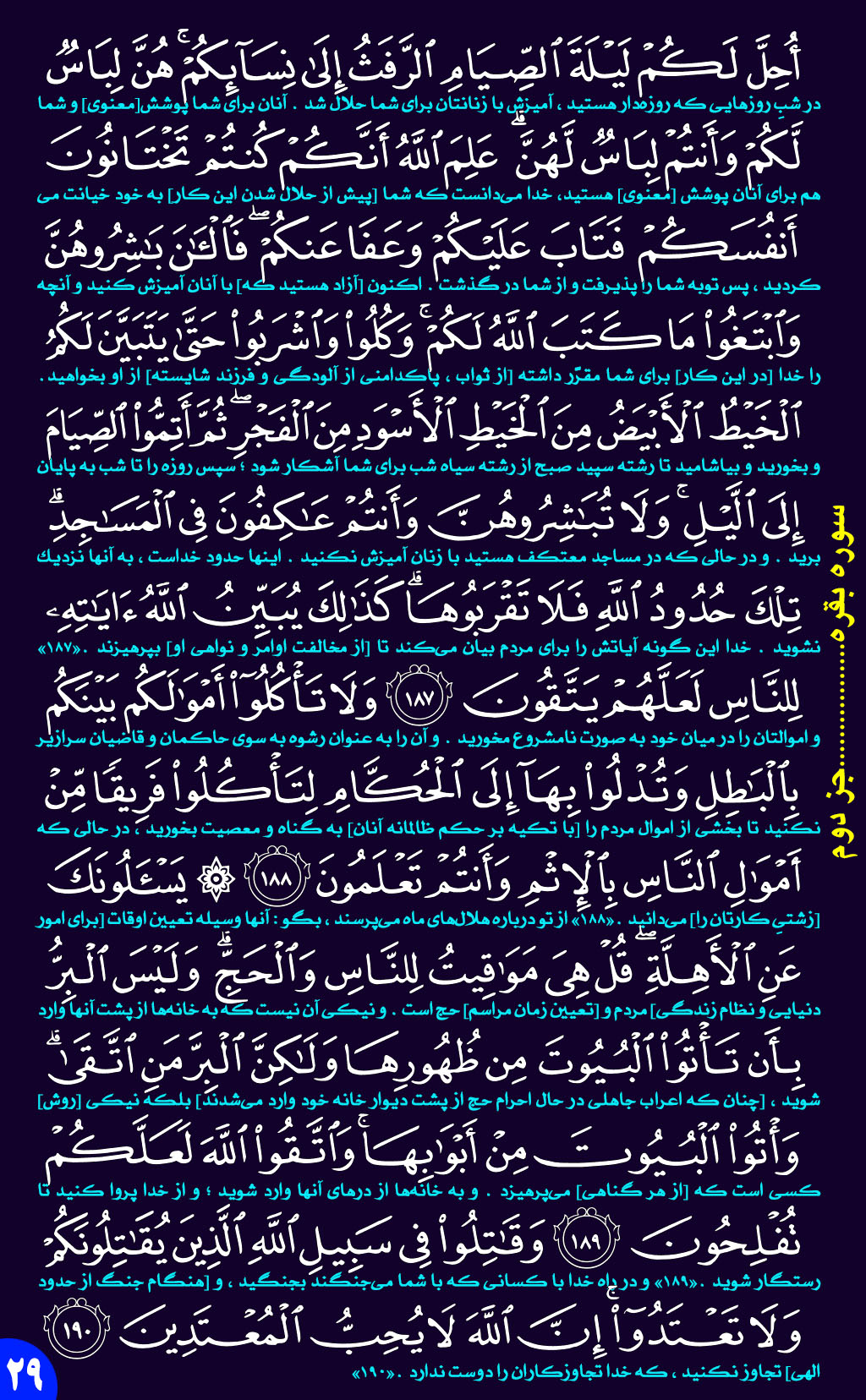 جزء دوم-ﺳﻮره ﻣﺒﺎرﮐﻪ ﺑﻘﺮه آیات 187 تا آخر آیه 190