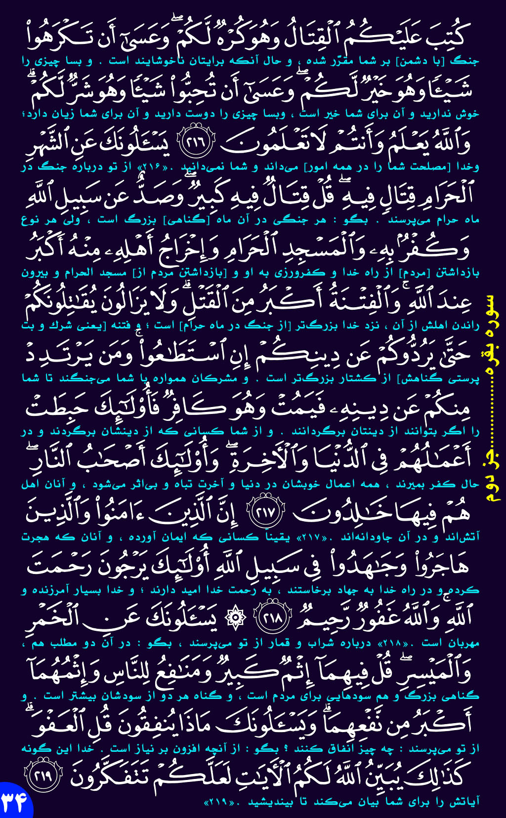 جزء دوم-ﺳﻮره ﻣﺒﺎرﮐﻪ ﺑﻘﺮه آیات 216 تا آخر آیه 219
